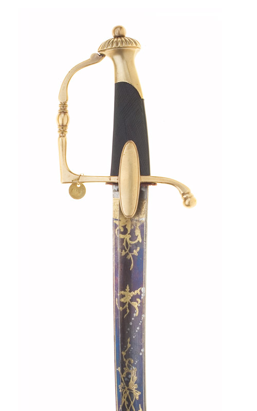 Dieser vor allem während dem 1.Kaiserreich (1804-1814) bei den Infanterieoffizieren beliebte Säbel, wurde während der Restaurationszeit in Frankreich, aber auch in anderen Ländern weiterhin verwendet. Das vorliegende von der Firma der Gebrüder Weyersberg in Solingen produzierte Exemplar ist eine späte in die Zeit von ca.1830 zu datierende, u.a. für den Schweizermarkt bestimmte Version. Die Gebrüder Weyersberg treten in der Solinger Messermacherrrolle 1803 und 1817 in Erscheinung. Die Weyersberg gelangten am 14.1.1719 in den Besitz der bekannten Königskopfmarke der Klingenschmiedendynastie Wundes.